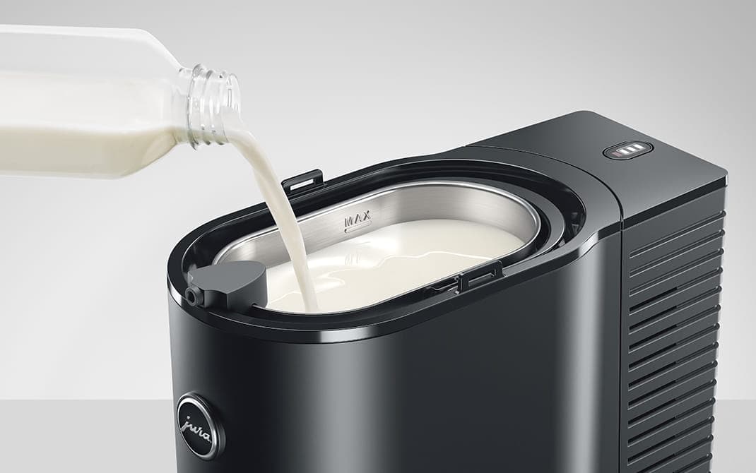 A uma temperatura ideal de 4 °C e em combinação com condições de higiene perfeitas, o leite constitui a base para a preparação de múltiplas criações de receitas. Um design esbelto e elegante, materiais robustos e detalhes de alta qualidade em aço inoxidável, bem como um conforto ótimo na utilização, fazem do Cool Control o acessório perfeito para todas as máquinas de café automáticas. As suas formas definidas e compactas enquadram-se perfeitamente no design clássico da JURA.