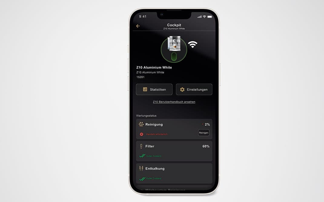 A J.O.E.® tem muitas dicas e informações no JURA Cockpit: graças às mensagens de estado confortavelmente acessíveis, as instruções em vídeo e estatísticas estão sempre disponíveis e os trabalhos de manutenção nunca se atrasam.