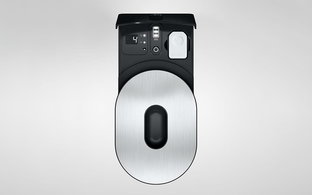 O Cool Control apresenta-se no look clássico da JURA. Materiais nobres, tampa em aço inoxidável de alta qualidade, com uma espessura de 1,5 mm, e elegantes ranhuras de ventilação completam o design do Cool Control. Com o seu estilo claro e reduzido, o Cool Control de 0,6 l adapta-se a todas as máquinas de café automáticas da JURA.