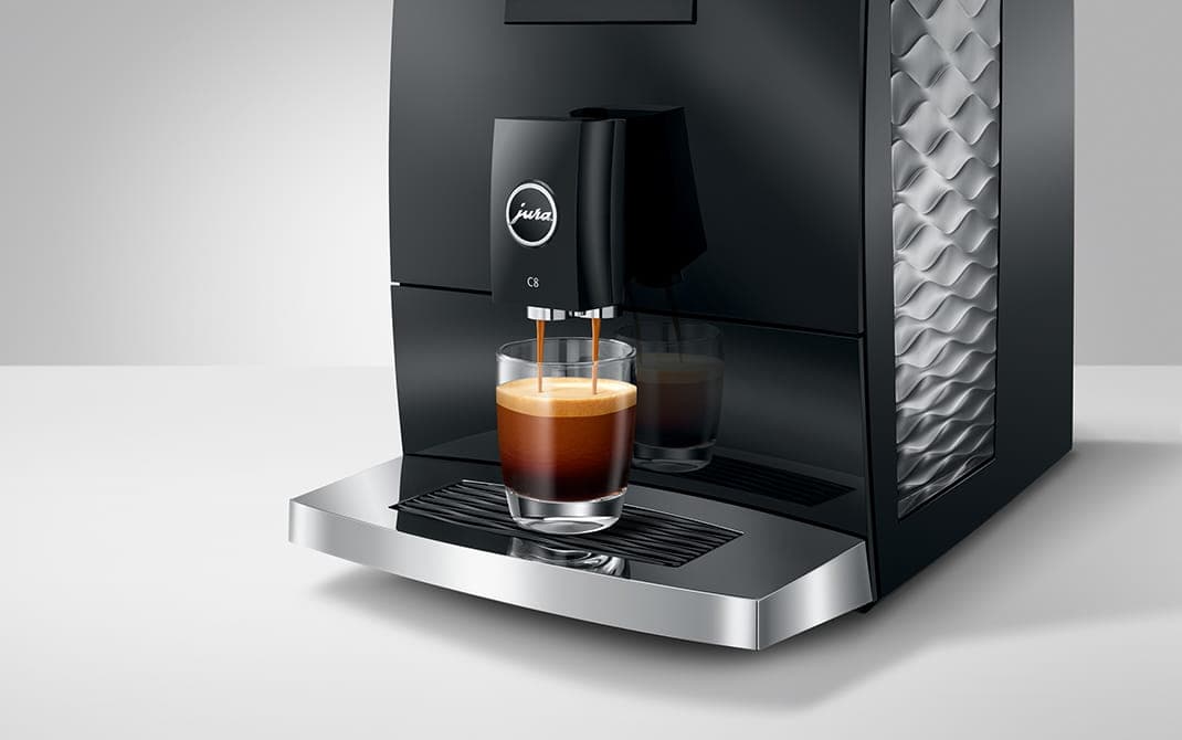 A C8 constitui a classe Premium-Economy da JURA. Num tamanho compacto, com interior potente e elementos de design de classe Premium, alcança um resultado de café de natureza particular.
