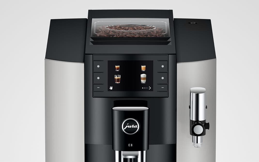 A última geração da E8 satisfaz, em todos os aspetos, as elevadas exigências impostas ao desenvolvimento do modelo da máquina de café automática de maior sucesso da JURA. Inspira com excelentes resultados de café, impressiona com a sua operação simples e estabelece padrões com o seu design moderno e elegante.