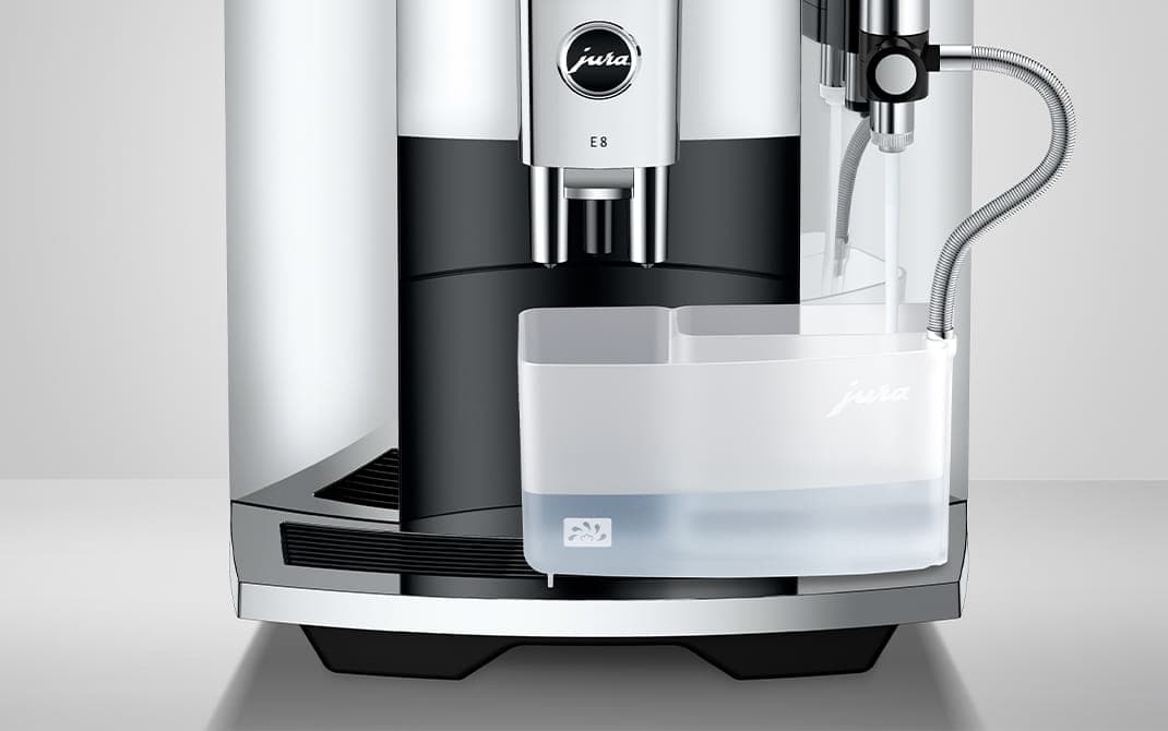 A limpeza do sistema de leite cuidadosamente delineada realiza-se de forma automática num abrir e fechar de olhos e com um simples toque de botão. A bandeja de recolha de água promete também ergonomia ideal. A sua construção evita que seja derramada água, podendo também ser removida confortavelmente com apenas uma mão.