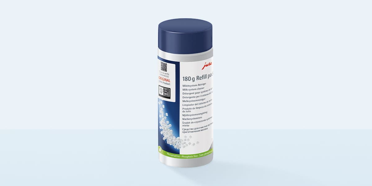 A tecnologia de espuma fina da JURA permite a preparação de especialidades de café, como Latte macchiato, Cappuccino, expresso macchiato ou Flat white, ao mais alto nível. Para que tal assim se mantenha, foi desenvolvido o produto de limpeza do sistema de leite, sob a forma de minipastilhas. Numa combinação com o programa de limpeza automático, este remove as matérias gordas lácteas e proteínas de forma altamente eficaz. Os tubos permanentemente limpos asseguram, assim, um resultado de espuma de leite sempre cremoso, suave e fino.